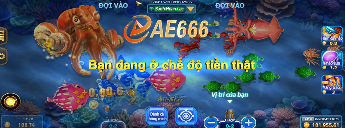 Bắn cá đổi thưởng AE666 là tựa game quen thuộc mang đến trải nghiệm giải trí sinh động với đồ họa ấn tượng. Trò chơi lấy cảm hứng từ mô hình bắn cá tại các khu vui chơi giải trí nổi tiếng toàn cầu, thu hút hội viên bởi sự phong phú của các loài sinh vật biển & hiệu ứng màn hình bắt mắt.