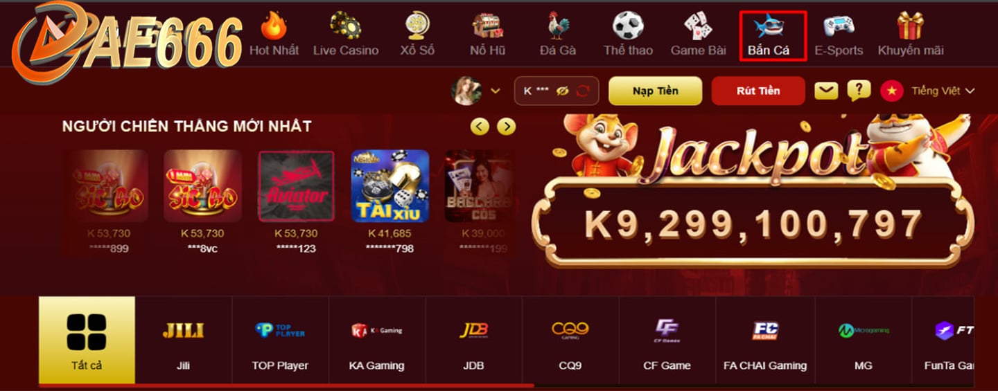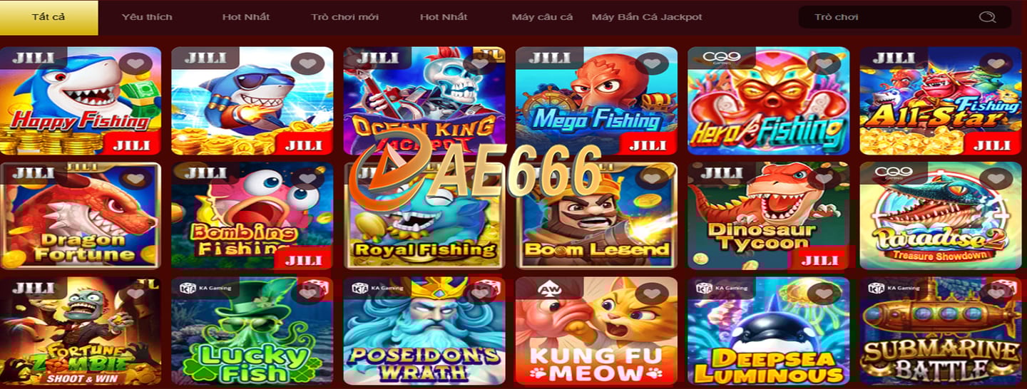 AE666 tự hào sở hữu tổng hợp hơn 20 tựa game bắn cá đa dạng, từ các thương hiệu đình đám như JILI, JDB, Top Player cho đến các phiên bản nội bộ độc quyền.